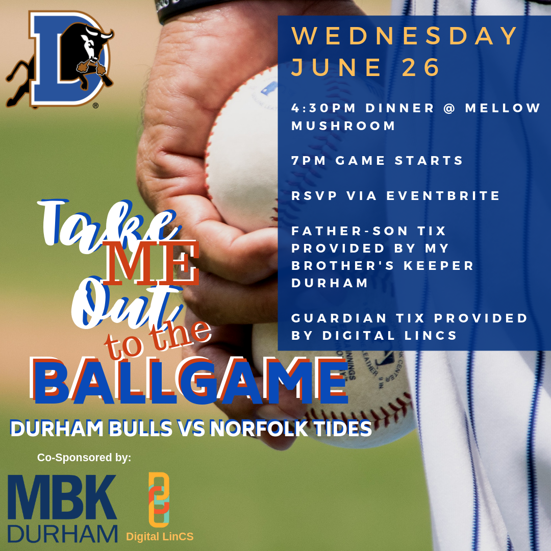 MBK Durham and Digital LinCS invite you to the second annual "Take Me Out to the Ballgame" special event at a Durham Bulls game.